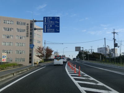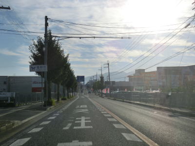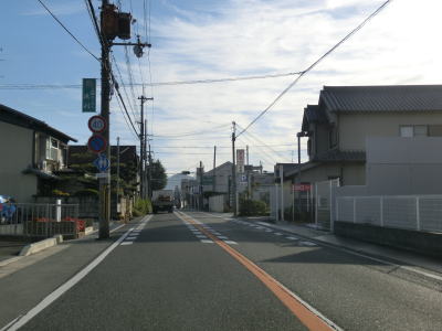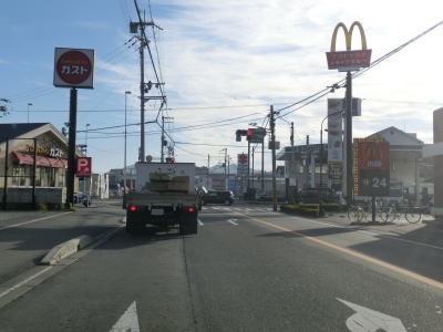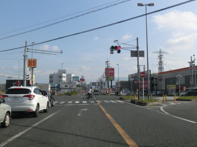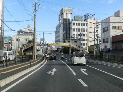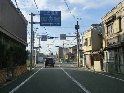 | 下田交差点から約5.2kmで日之出町交差点に突き当たり、右折して桜井・橿原方面に進む。日之出町交差点からも2車線道路だが歩道は設置されてない。車両の交通量も歩行者・自転車の交通量も多い区間なので厄介である。約500m南では近鉄大阪線の踏切があり、通勤時間帯には少し早い時間だったが流れが悪く渋滞気味であった。 | ||