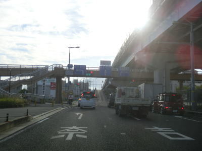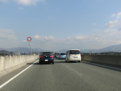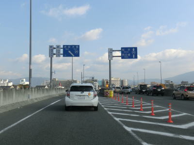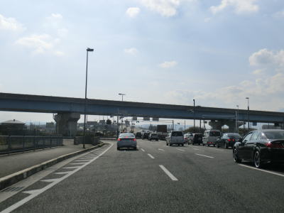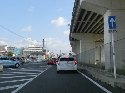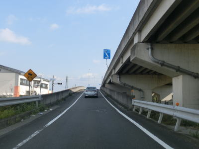 | 75.大和高田バイパスの高架の側道を走る | 76.雲梯ランプから高架に上る | 77.高架は片側2車線 |