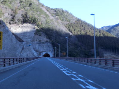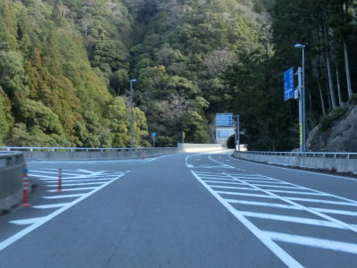 | 短い狭路区間が終わるとカーブが少ない2車線快走路となる。丸瀬トンネル以降は見通しの悪いカーブが少なくなりさらに走りやすくなる。2015年に供用を開始した高津トンネルは歩道付きの2車線と改良されているが、元々あった高津隧道を拡幅したものと思われる。 | ||