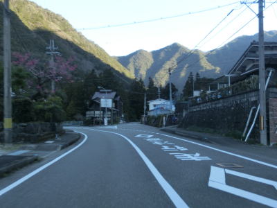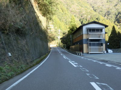 | 旧道との合流後もカーブは多いものの概ね走りやすいと言える2車線道路が続いている。下番集落で左カーブを通過するが、右側に交差している道路はこれまた川沿いを走っている事から旧道と思われる。 | ||