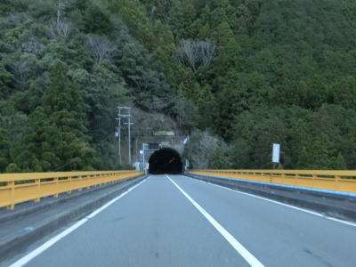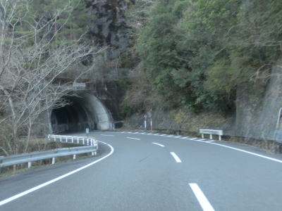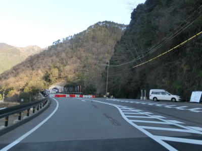 | 103.国王トンネルの坑口脇を通過 | 104.川津道路以降は2車線 | 105.上野地トンネル |