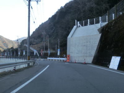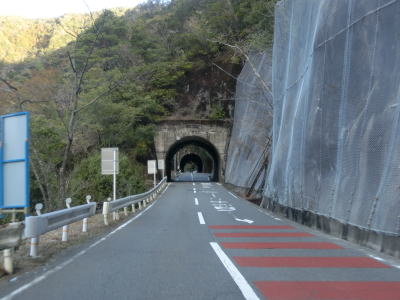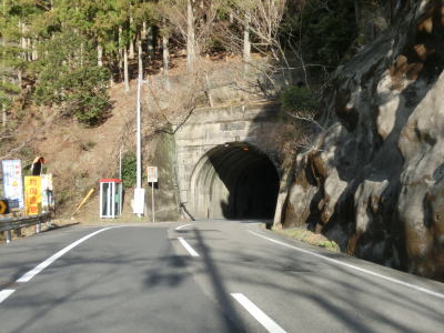 | さらに百徳隧道と川上隧道を連続してくぐり、少し離れた所の助人隧道をくぐる。百徳隧道と川上隧道はどちらも短く狭いながらもセンターラインが引かれているが、助人隧道は引かれていない。また、助人隧道の手前の左側には枯草が堆積した1.0車線幅の道路が接続しているが、これは旧道ではなく無線の中継局へのアプローチ道である。助人隧道を出ると左にカーブしてしばらく風屋貯水池に沿って走る。 | ||