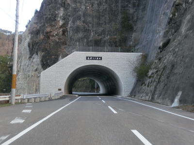 | 旧道との交差点を通過してすぐに小井橋を渡って小井トンネルをくぐり、次に池穴大橋と池穴トンネル、そしてさらに山崎橋と山崎トンネルを通過する。どのトンネルにも川沿いに旧道があり、それぞれ集落があるため閉鎖されていない。トンネルが最も長いイコール旧道が長いのは小井橋+トンネルだが、集落が南側の限られた範囲にしかないため全て通行できるか否かは不明確である。 | ||