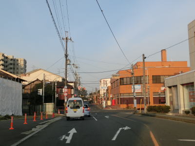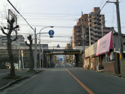 | 近鉄大阪線のガードをくぐった直後にJR桜井線の西栄町踏切を通過する。桜井バイパスにおいても近鉄、JRどちらもクロスしているが、両方とも国道が線路をアンダーパスしている。桜井線から南も2車線道路が続いているが、沿線に建物が密集しており狭苦しさを感じる道路状況である。 | ||