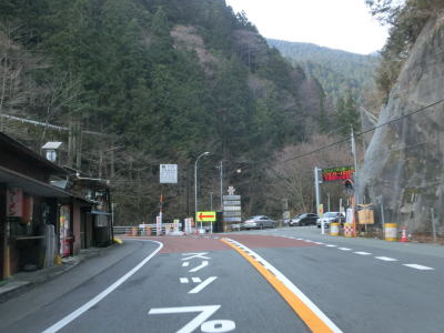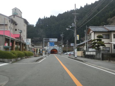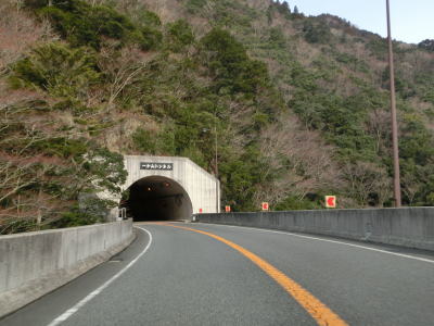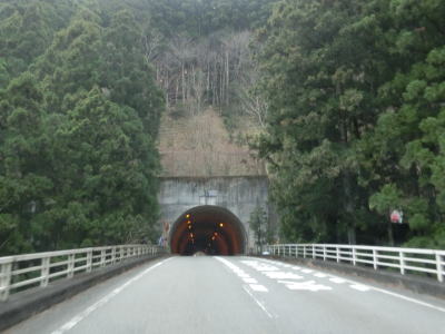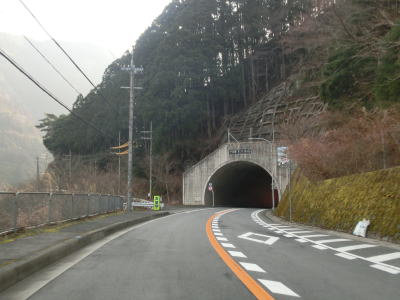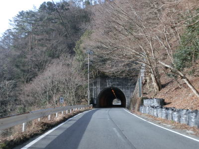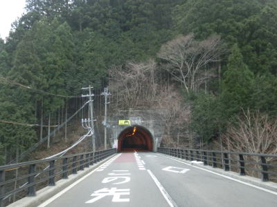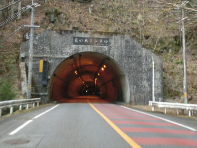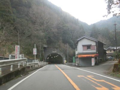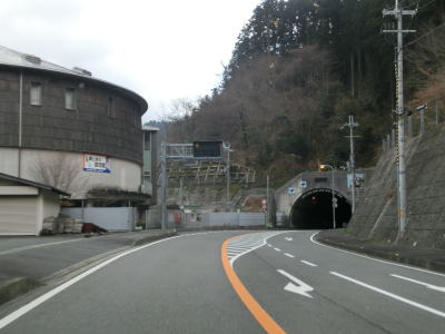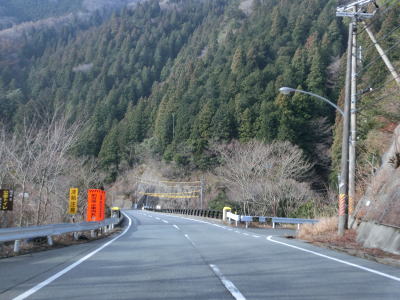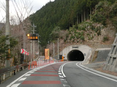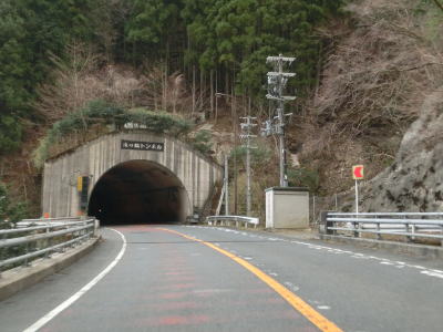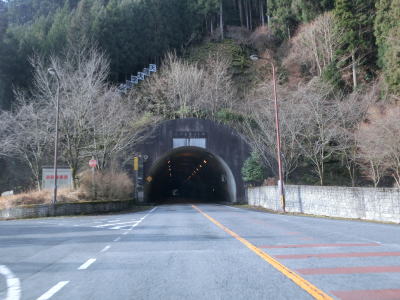 | 大獄トンネルを出ると旧道との交差点を通過してから伯母峯大橋を渡る。橋を渡った先の南詰でも橋部分の旧道が交差している。山葵谷に沿って走っていると左にカーブしながら奈良r40交差点を通過する。このr40は路線名を大台ケ原公園川上線と言い、大台ケ原ドライブウェイとして知られている元有料道路である。冬期(12月から翌年4月中旬)は閉鎖されており、走行時は閉鎖ゲート前に登山客のものと思われる車両が停まっていた。 r40交差点の直後に新伯母峯トンネルに入る。新伯母峯トンネルの開通は1966年と古いが延長は1964mもあり、おそらく開通当時は奈良県で最長のトンネルを思われる。以前の伯母峯隧道はr40の大台トンネルの近くにあったが、内部が埋められており通行はできない。 |
