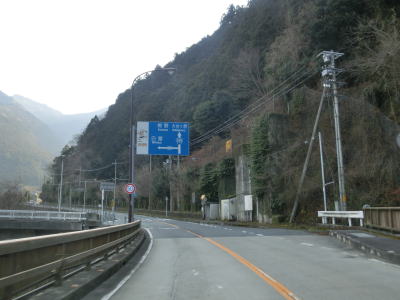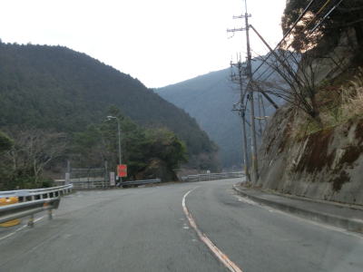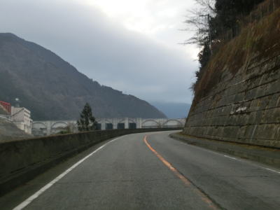 | 奈良r262交差点からは吉野川沿いの谷筋を走る。大滝郵便局の前の左急カーブを曲がると前方に大滝ダムが見えてくる。大滝ダムの真下まで行ける道路との交差点からは8%の急勾配を上り、ダムの横は大滝トンネルで通過する。 | ||