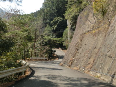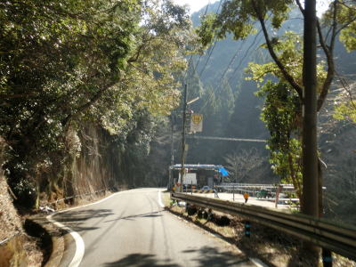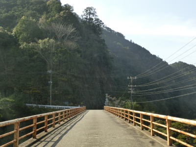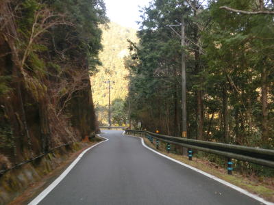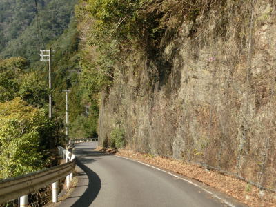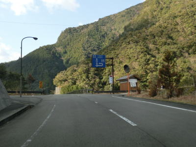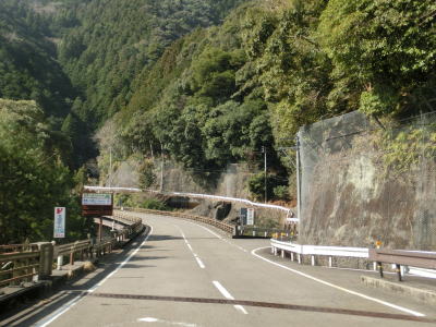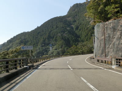 | 北山川に沿った狭路をひたすら走る。交通量は決して多くないのだが、北山村に北から入るメインルートのため対向車が全く現れない訳ではない。北山川の対岸は和歌山県北山村だが、道路も集落もない場所である。 | ||