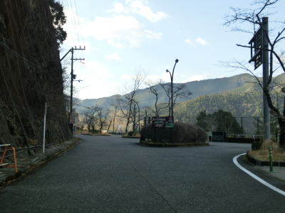 | 前方に七色ダムが見えてきた所でコンクリート舗装になり、左の急カーブを曲がった先で三重r738交差点に至る。R169は右折だが交差点の中央に花壇のようなものがあり、その手前を曲がるのか、ロータリーのように奥を曲がるのか判断し難い。 | ||