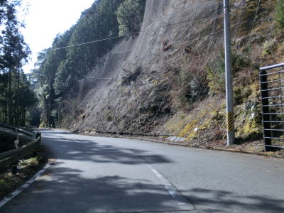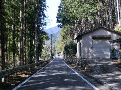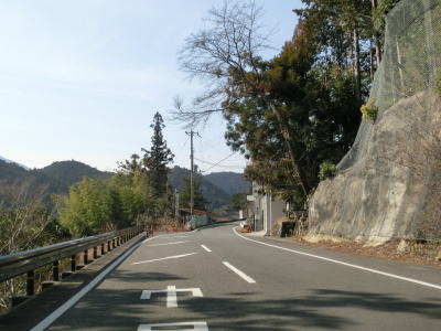 | 竹原集落に差し掛かると道幅が狭くなり1.5車線幅になってしまう。走行した日は拡幅工事が行われており、遠からず2車線区間が延伸されるものと思われる。しかし狭路区間の全てが拡幅されるのではなく集落内の一部にとどまっている。 | ||