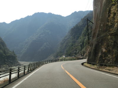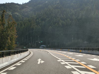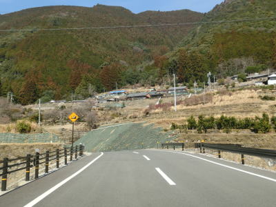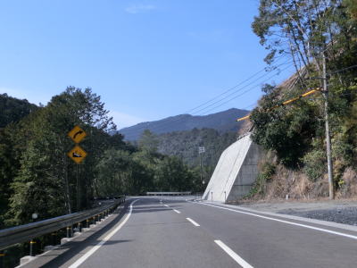 | 竹筒交差点からはR311が重複しているのだが、R311のおにぎりは設置されていない。旧道との交差点を通過してすぐに右にカーブしてアップダウンとカーブのある2車線道路を走る。北側に並走している道路が旧道だが、厳密に言えばR169の旧道ではなくR311の旧道である。奥瀞道路の開通に合わせて元々R311単独だった区間がR169に編入されて整備されたという経緯がある。 | ||