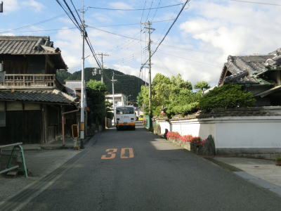 | 186.やや急な勾配を上る | 187.熊取町小谷北 | 188.家屋密集地帯にはセンターラインなし |