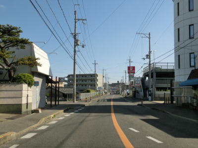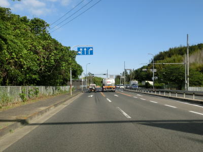 | 貝塚市に入ってすぐに幅員減少の警戒標識が立っているが、路側帯が狭くなる程度で車両の走行に影響するようなものではない。むしろその先の家屋密集地の方が走りにくく感じられるくらいである。大阪r40木積交差点を通過するが、左折してr40を約150m進むと阪和道の貝塚ICに行く事ができる。 | ||