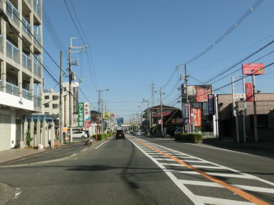 | 189.小垣内バス停 | 190.熊取中央中学校付近は2車線 | 191.道幅の割に交通量は多い |