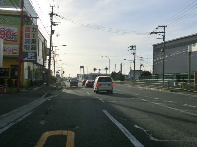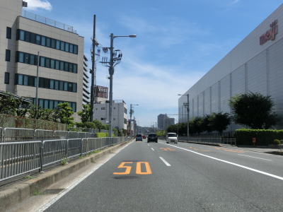 | 57.大阪r115・r127大畑町交差点以降は大規模工場が多い | 58.大阪r6今城町交差点 | 59.柳原交差点を道なりに右へ進む |