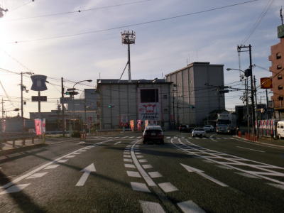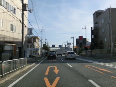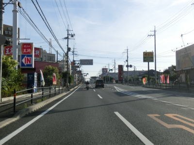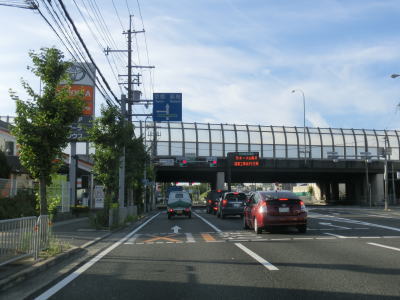 | R423萱野交差点からも4車線道路が続いている。交差点や商業施設が多いという点においても変化はない。大阪r119今宮交差点以降はアップダウンしているものの直線的で見通しは良好である。前述のとおり路上駐車車両や右折待ち車両をかわしながらの走行となる。関西電力総合運動場の南で市境を通過して茨木市に入るが、道路状況と周辺の様子に特に変化は見られない。茨木市に入って程なくして大阪r1清水交差点を通過するが、交差点の上にはr1の跨道橋だけでなく大阪モノレール彩都線の高架も横切っている。 | ||
