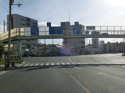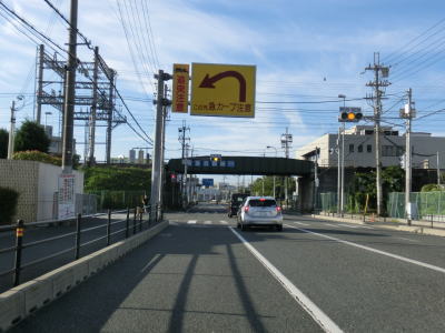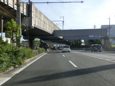 | 柳原交差点のすぐ先でJR東海道本線のガードを通過し、規模の大きい工場&物流倉庫の間を通過すると阪急京都線のガードをくぐる。直後の中川町交差点を道なりに左へカーブする。右にカーブしてから左にカーブという状態は茨木IC前後と似ている。 | ||