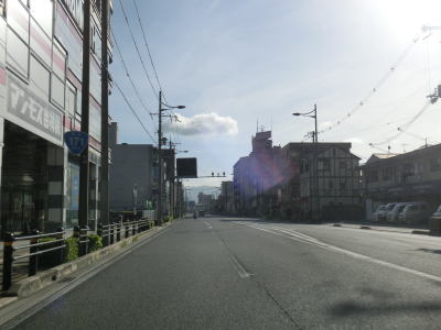 | 葛野大路九条交差点からも4車線道路が続いている。約600m走ると京都r181西大路九条交差点を通過するが、直進ではあるものの右にカーブしているので進むべき道を見失わないように注意が必要である。西大路九条交差点からは中央分離帯が現れて片側2車線道路になる。 | ||