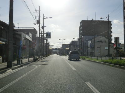 | 54.左側車線がなくなるかのようだが… | 55.右折車線のない交差点が多い | 56.高槻市に入る |