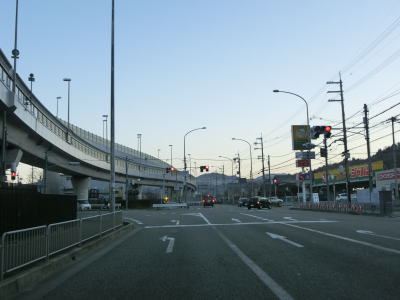 | 1.R176・R423・R477西本町交差点 | 2.反対側車線には長い右折車線あり | 3.阪神高速の新猪名川大橋 |