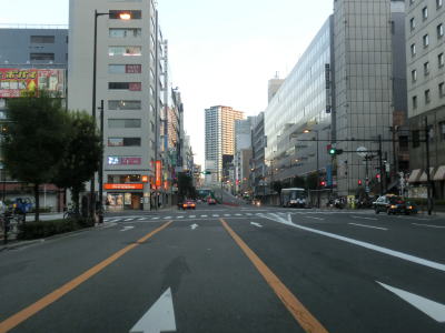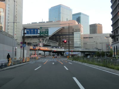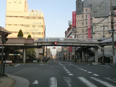 | 4.正面の建物は大阪駅 | 5.芝田1交差点 | 6.南向き車線の1車線は高架道路 |