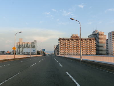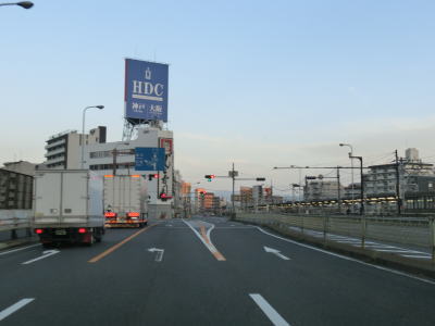 | 19.梅田貨物線の跨線橋は左側車線が狭い4車線 | 20.4車線道路を北上 | 21.新三国橋 |