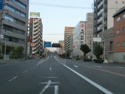 | 大阪府大阪市の中心部でもある大阪駅・梅田駅の南に位置する梅田新道交差点がR176の終点である。交差点の北にR176、東にR1・R163、南にR25・R26・R165、西にR2と合計7本もの国道が交差している国道の交差点の重鎮のような交差点である。ただし、案内標識にはR1、R2、R25、R176の4本しか表記されていない。 梅田新道交差点からR176に進むと両側の歩道だけでなく中央分離帯にも背の高い街路樹が植えられた片側2車線道路を走る。中央分離帯の街路樹がなくなると車線が増えるが、バリケードが置かれているため走る事ができない。阪急百貨店の本店を正面に見ながら左にカーブする。道路の左側には阪神百貨店の本店がある。 |