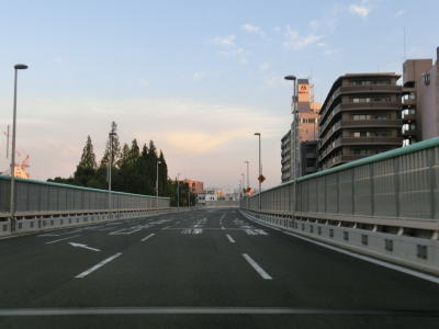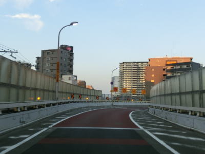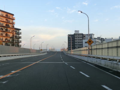 | 10.中津交差点以降は4車線道路 | 11.高架道路へ進む | 12.右の急カーブを曲がる |