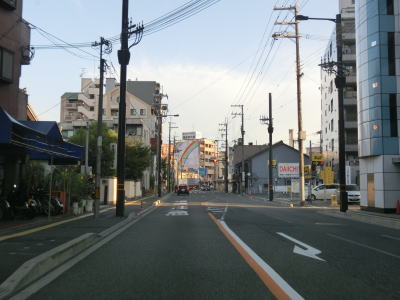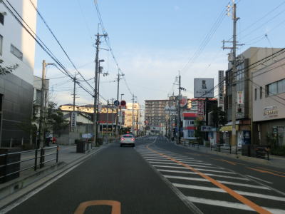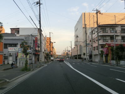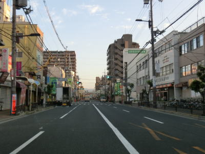 | 25.阪急庄内駅付近は路上駐車が多い | 26.庄内東町交差点も右側車線が右折車線になる | |
