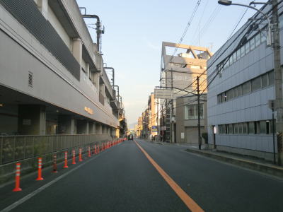 | 阪急のガードを過ぎると庄内駅の東側を通過するが、駐車場のない店舗が建ち並んでいるせいもあって昼間から夜に掛けての時間帯は多くの路上駐車車両が止まっている場所である。深夜早朝であっても数台程度が止まっている事が多い。路上駐車区間が終わるのは庄内東町交差点であり、この交差点も右側車線が右折専用車線になってしまう。南向き車線の右側車線は右直兼用車線だが、右折した先の阪急のガードに1.7mの制限高があるためか右折する車両は少ない。 | ||