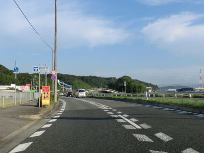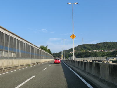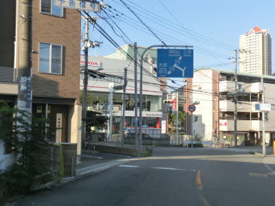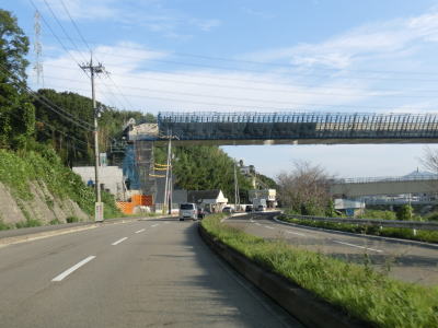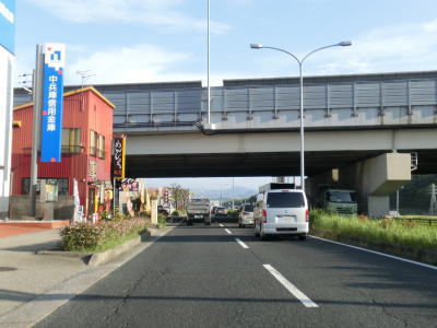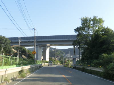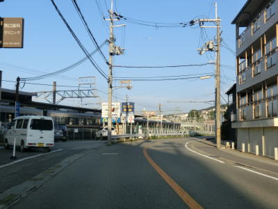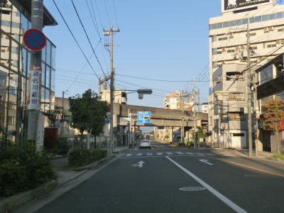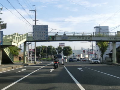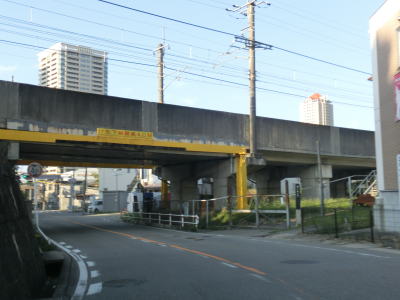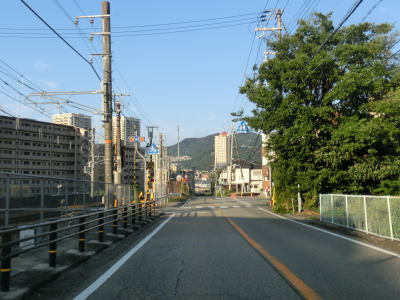 | JRと阪急の間のアップダウンしている2車線道路を西の方角に走る。早朝のため交通量はさほど多くなかったが、信号機付きの交差点が多く切替りのタイミングが悪く流れは良くない。中国道の下をくぐる辺りからは歩道がないかあっても狭く乗用車でも走りにくさを感じる。再びJRに隣接するようになるが、反対側には家屋数軒の奥に阪急が並走している。 | ||