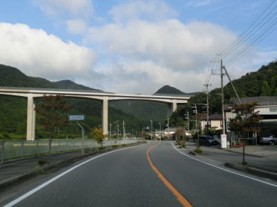 | 武庫川に沿っていくつかの急カーブを曲がりながら2車線道路を走っていると細田橋を渡って篠山市に入る。武庫川左岸の山裾を少し走った後に舞鶴若狭道の丹南武庫川橋の下をくぐる。その後も武庫川の左岸を走る。対岸にはJR福知山線の草野駅があり、家屋の数は決して多くないが途切れる事なく続いている。丹波旬の市南部店という土日のみ営業している物産店を通過した直後に神橋を渡る。以降は武庫川の流域を外れてしまう。 | ||