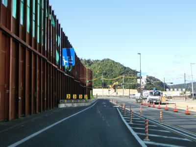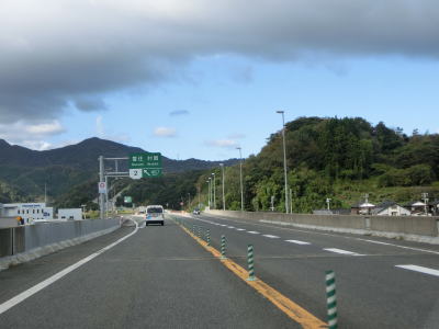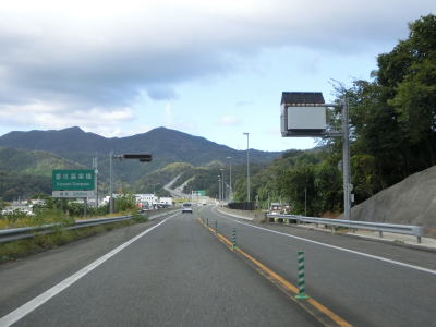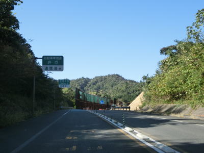 | 長見寺トンネルを出て緩やかな勾配を下っていると香住高架橋を渡り、その途中で香住ICを通過する。香住IC〜余部ICが供用された後に追加でこの区間の現道も国道の指定を外されて兵庫r4となっている。前回(2015年9月)はウオッちずにおいて現道も国道扱いしていたため、香住ICで降りて現道を走行したが、今回はそのまま直進している。 | ||