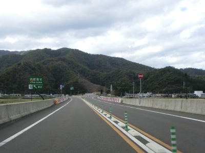 | 二日市トンネルと大庭トンネルをくぐった後に大場大橋を渡るが、橋の西詰で本線からランプに強制的に降ろされる。これは走行日時点のE9山陰近畿道が新温泉浜坂ICまでしか供用されていないためである。 | ||