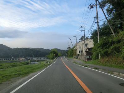 | 76.JR姫新線の力万踏切 | 77.大日山川沿いを快走 | 78.町道(林道?)との交差点まではほぼ平坦 |