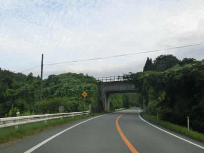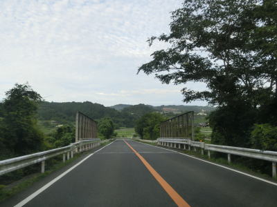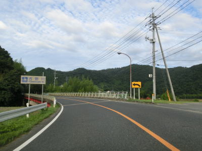 | 川北交差点の直後に大還小橋を渡るがその下にはJR姫新線が通っている。所謂、跨線橋というものだが前後に勾配がないせいもあって下に線路があるのは想像し難い。大還小橋からも引き続き多くの家屋が建っている間を通っており、程なくして美作江見駅の近くを通る。その後は姫新線とともに吉野川の右岸の山裾を走る。川とは少し距離があり、カーブが少なくアップダウンも緩やかで走りやすい道路状況である。川北跨線橋の近くは山が川に迫っている場所を通っているため、周囲の家屋の数は少ない。 | ||