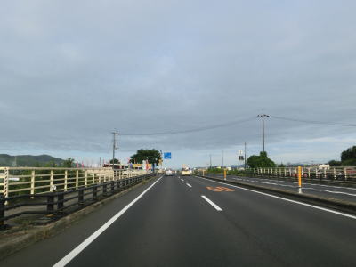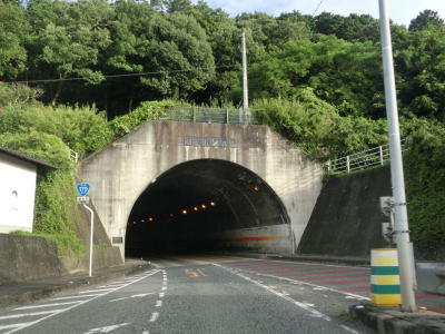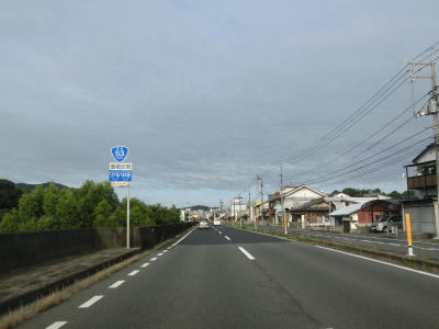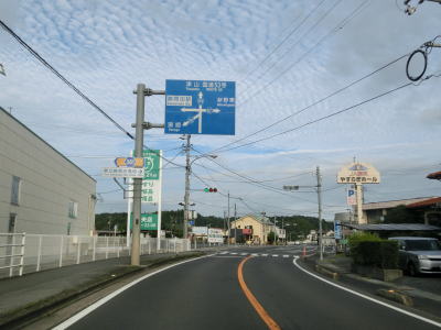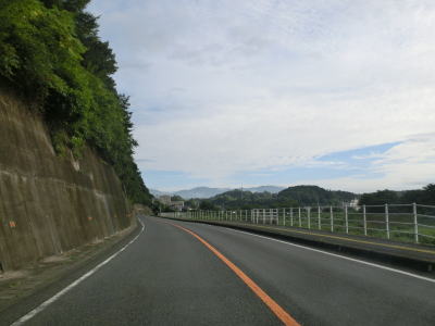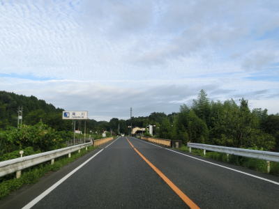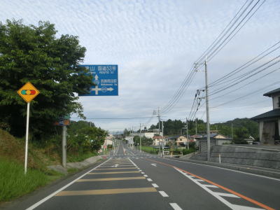 | 明見交差点からは中央分離帯が設置されており、片側2車線道路に見えるが、津山方面の左車線はすぐになくなるし、交差点方面は左折車線と右折車線なので片側2車線道路とは言えないかもしれない。対面2車線道路になった所で明見トンネルに入る。トンネルを出てからもしばらく上り勾配が続くが、市道の跨道橋をくぐった先から下り勾配となる。明見トンネルの旧道らしき市道との交差点を通過した後に右、左とカーブし、その先で市町境を越えて勝央町に入る。 | ||