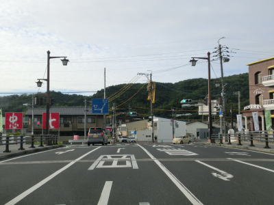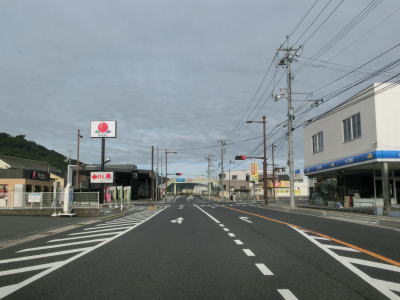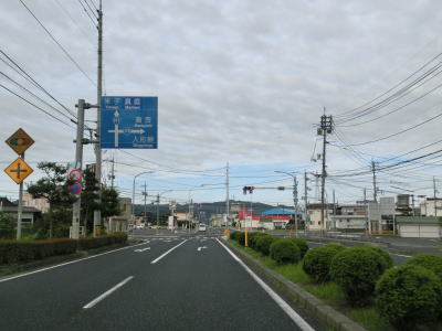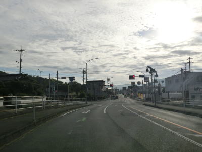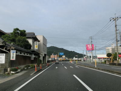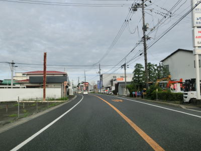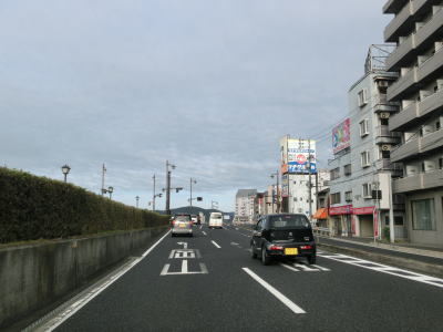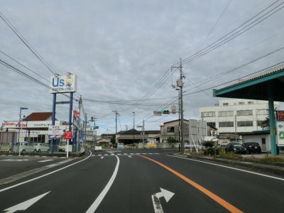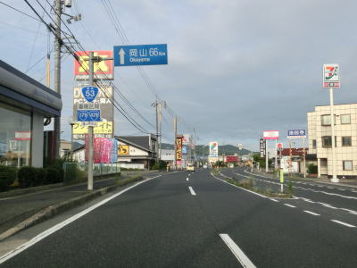 | 吉井交差点からは緩やかに下りながら津山駅前の商店街だった場所を通る。かつてはアーケードが設置されていたのだが、既に撤去されており駅の近くに建っていたビルは解体されてコンビニに変わっていた。 津山駅の前を右にカーブしてからは対面2車線道路を走る。津山市の市街地の西部を縦断している岡山r68との交差点を通過、吉井川の右岸を西進する。幹線国道のR53とR179が重複しているため交通量が多く、対面2車線道路なので流れが悪い。 |