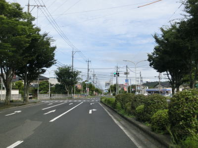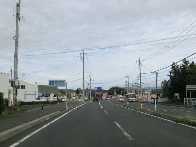 | 今泉交差点を通り過ぎてすぐに車線が増えて片側2車線道路になる。少し走ると反対側車線と距離が離れた所で円谷トンネルをくぐる。歩行者と軽車両はトンネル内を通行できないため、トンネルのない南向き車線の歩道を歩くもしくは走る事になるのだろう。なお、トンネルの南側坑口付近に市町境があり、トンネルから北は倉吉市域である。 トンネルを出た後に反対側車線が近づいてきて通常の片側2車線道路に戻る。大原橋西交差点を過ぎると左にカーブして天神川から離れて、倉吉市の市街地と言える場所に差し掛かる。 |