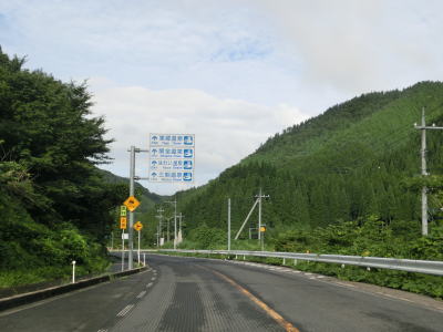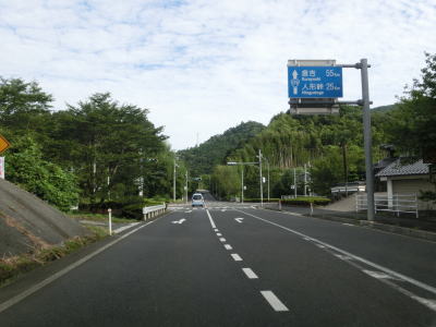 | 何度か吉井川を渡りながら淡々と上り勾配の2車線道路を走る。長距離に渡って上り勾配が続くが登坂車線は設置されていない。集落が途切れた所で上斎原トンネルといつきトンネルを相次いで通過する。 | ||
