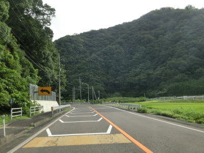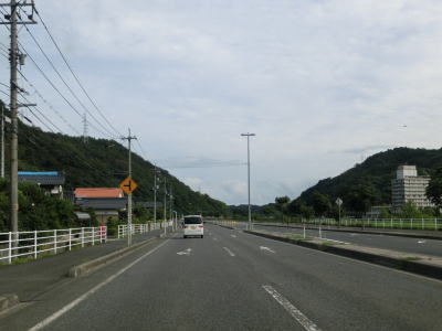 | 周囲に建物が少ない場所を走っているが片側2車線と良く整備された道路状況が続いている。多少アップダウンしているが、直線的なので非常に走りやすい。前方の小高い山が近づいてきた所で岡山r392交差点を通過するが、その手前で右側車線が減少する。 | ||