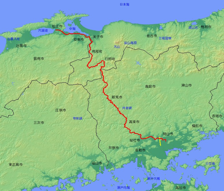 | 主な経由地 | 岡山県岡山市〜総社市〜高梁市〜新見市〜 〜鳥取県日野町〜南部町〜米子市〜 〜島根県安来市〜松江市 |