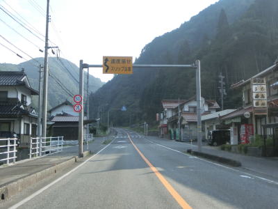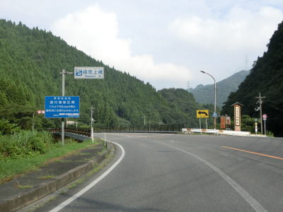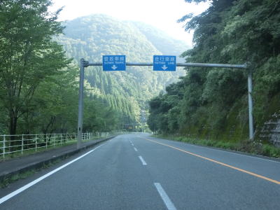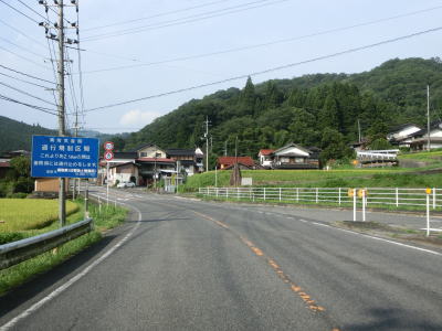 | 新黒坂橋を渡った所で異常気象時通行規制区間に入るが、その距離は短く2.5km程度である。日野川の左岸を走っていると乗越橋を渡って右岸に戻る。異常気象時通行規制区間は新黒坂橋〜乗越橋の左岸を走る区間に一致する。 | ||