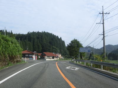 | 右のヘアピンカーブを曲がると視界が開けて鳥取県側で最初の集落である三栗集落が見えてくる。左ヘアピンカーブを曲がって門谷川を渡り、以降はその流域を走る。鳥取r311交差点付近からは勾配が緩やかになる。なお、r311は日野町に起終点をもつ県道で、R180とR183を繋ぐルートだが、点線区間があるため通り抜けできない。 | ||