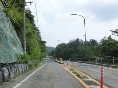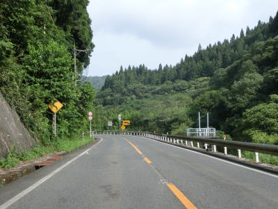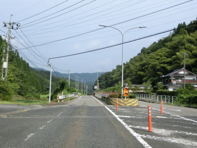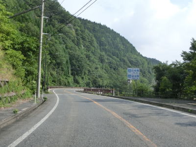 | 大木屋集落を過ぎると異常気象時通行規制区間の起点を通過するが、対象区間の距離は2.7kmでありゲートの類は設置されていない。集落のない法勝寺川の谷筋を走るが、異常気象時通行規制区間ないとは思えない程走りやすい道路状況である。大河内集落で大河内橋を渡るが、上下線が別々の橋となっている。元々はどちらか一方だけだったものが2車線化する際に新たに別の橋が架けられたものと推測される。 | ||
