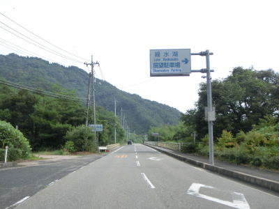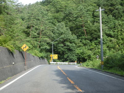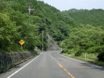 | 井ノ原集落を過ぎてからも勾配はさほど変化しないが、ヘアピンカーブを含めて急なカーブが多くなる。菅沢ダムに向かう道路が交差している左ヘアピンカーブの手前で町境を通過して日南町に入る。日南町に入ってからはダム湖である日南湖の湖畔を走る。 | ||