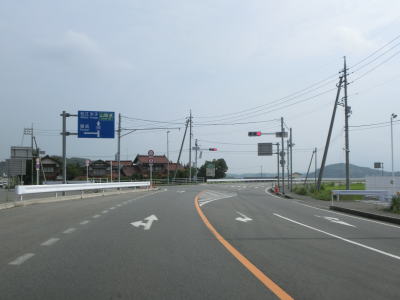 | 米子西ICを過ぎても下り勾配が続いており、左カーブの先でJR山陰本線をアンダーパスする。アンダーパスからのやや急な勾配を上り切ってすぐにR9陰田町交差点に突き当たる。陰陽連絡国道である点を考えるとこの交差点が終点に思えるが、松江方面に重複しているため左折しなければならない。なお、終点の相生町交差点までの全ての区間はR9に重複しており、実質的にはこの陰田町交差点が終点と言える。 | ||