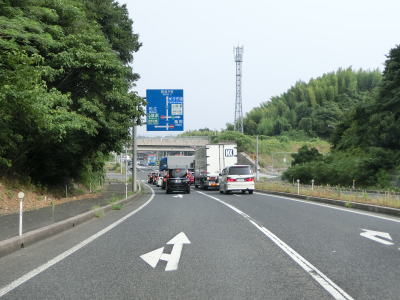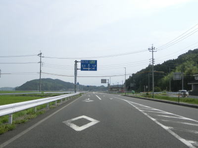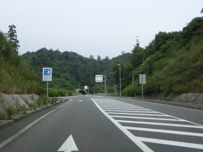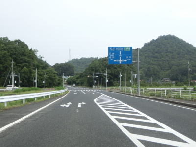 | 新山交差点からは再び上り勾配となり、新山トンネルをくぐる。トンネルからは緩やかな勾配を下り、左カーブの先でR9山陰道との米子西ICを通過する。左右どちらも山陰道だが、左折の松江方面は有料であり、右折の鳥取方面は無料である。 | ||