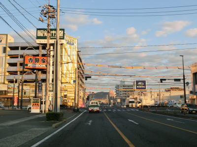 | 7.千塚池の東を通過 | 8.交通量は多い | 9.R313・R314神辺第1陸橋南交差点 |