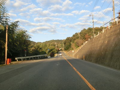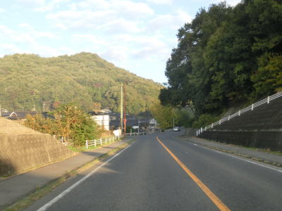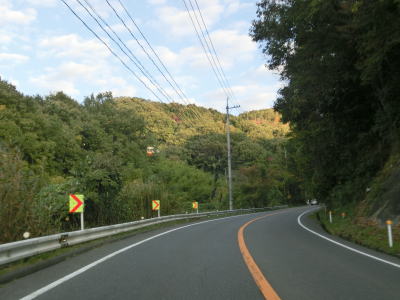 | 2ヶ所目の登坂車線が現れて、その状態で高山集落を走り抜ける。この登坂車線の距離は約500mである。高山集落を通り過ぎて次の姫谷集落との間で一時的に下り勾配となるが、その勾配は8%と急である。急勾配を下っていると左にカーブして姫谷集落に差し掛かり、上り勾配に転ずる。この姫谷集落は福山市側の最後の集落である。集落を過ぎると3ヶ所目の登坂車線が現れる。 | ||