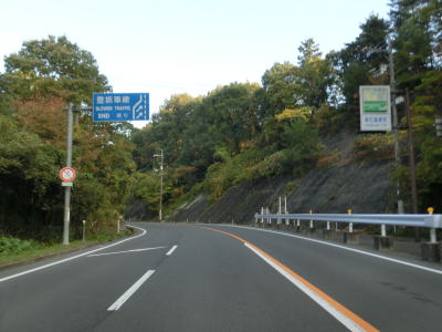 | 谷筋に入ると登坂車線が現れ、その距離は約450mである。百谷川の谷筋の上り勾配が続いている。沿線には家屋が点在しており、数こそ少ないもののほとんど途切れる事なく続いている。 | ||